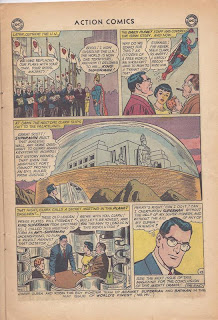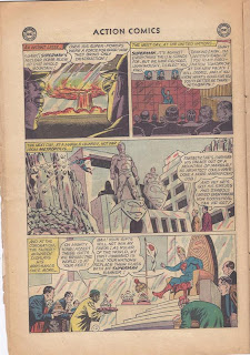 Kav: I have to stop here as an artist and point out how well drawn panel one is. That Curt Swan was incredible. It makes it better to ridicule a story with a good artist because you can see exactly what you are making fun of. Hi-res, like. Then Superman demands gifts like a spoiled kid on the day before their birthday. Funny. Then he rejects the gifts when they bring them and demands Superman flags instead. Yep, he's definitely like a spoiled little brat.